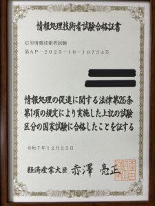 基本情報技術者試験に合格した後も、学びを止めることなく挑戦を続けてきました。